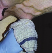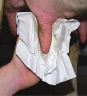 Hygiène avant la traite :Préparation de la mamelle