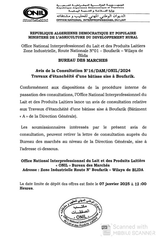 avis de consulation N°15/DAM/ONIL/2024